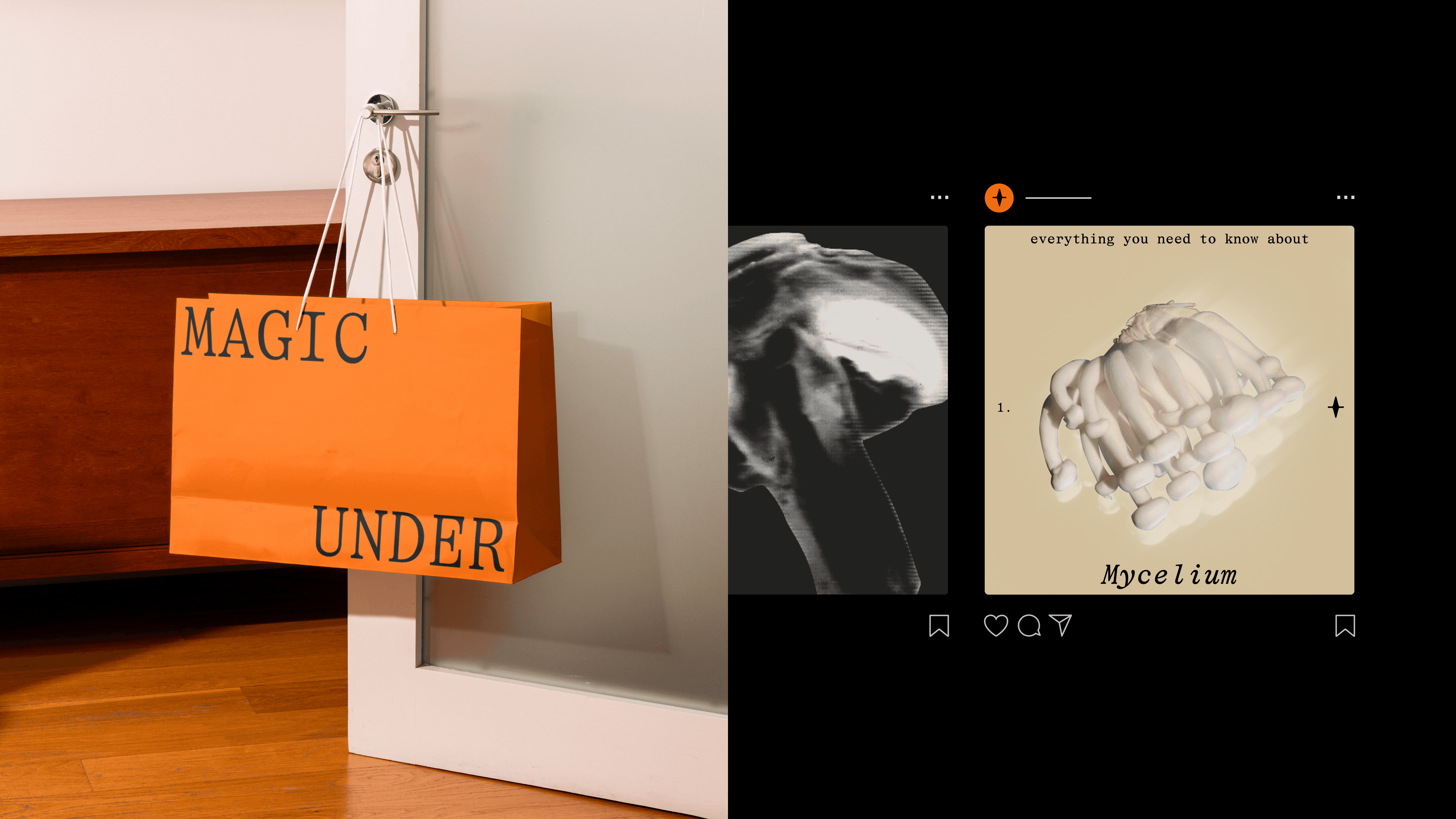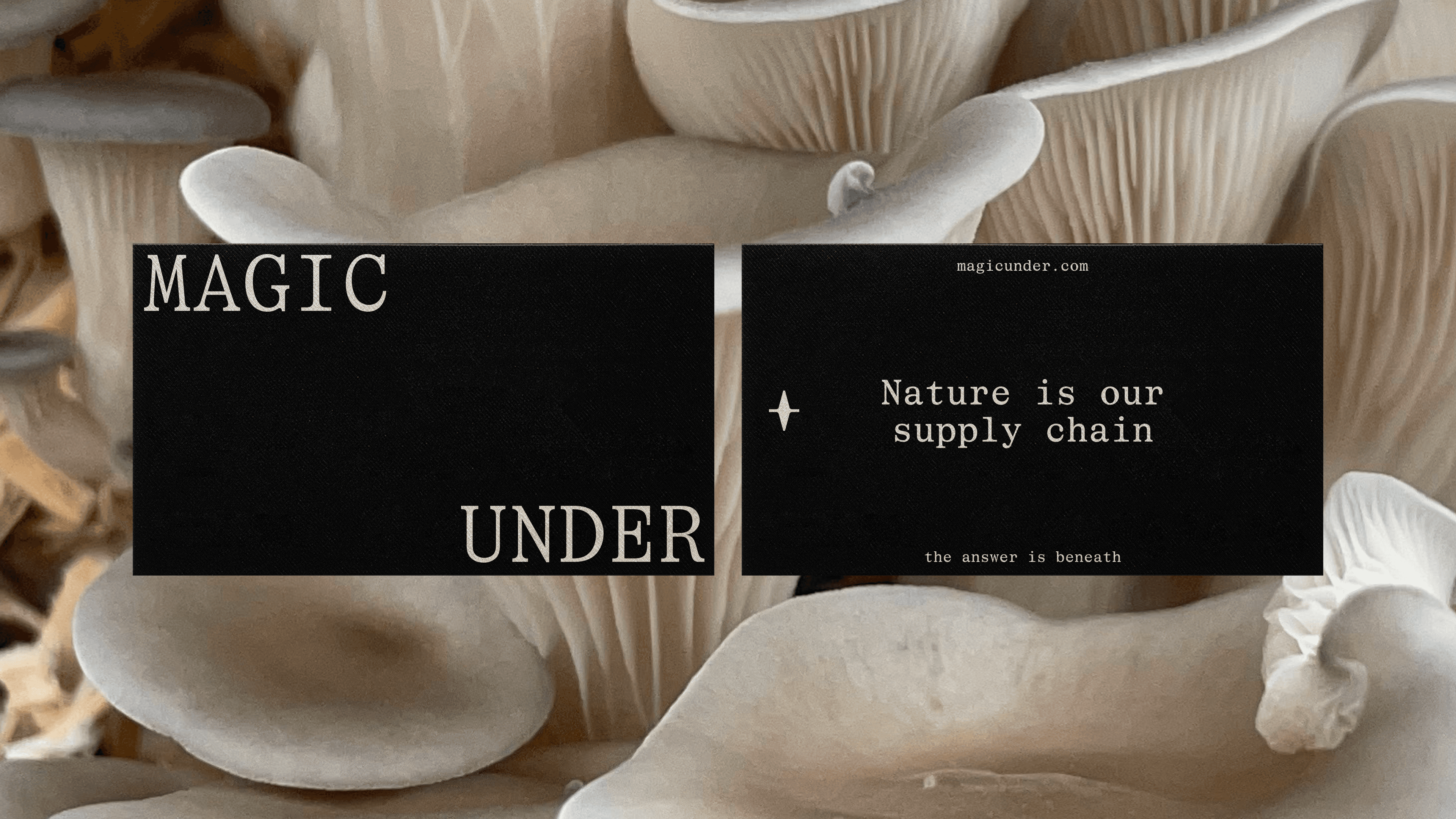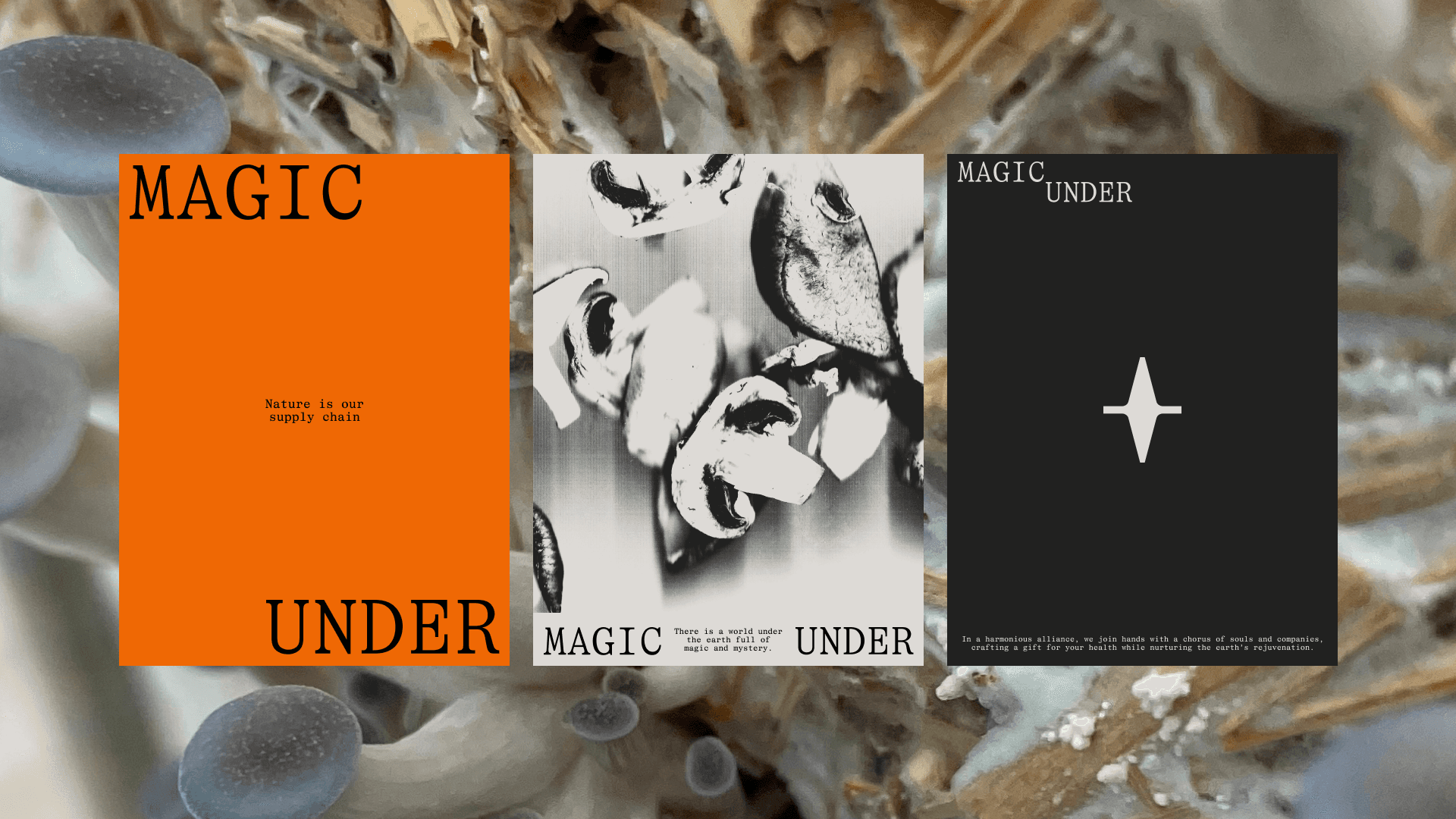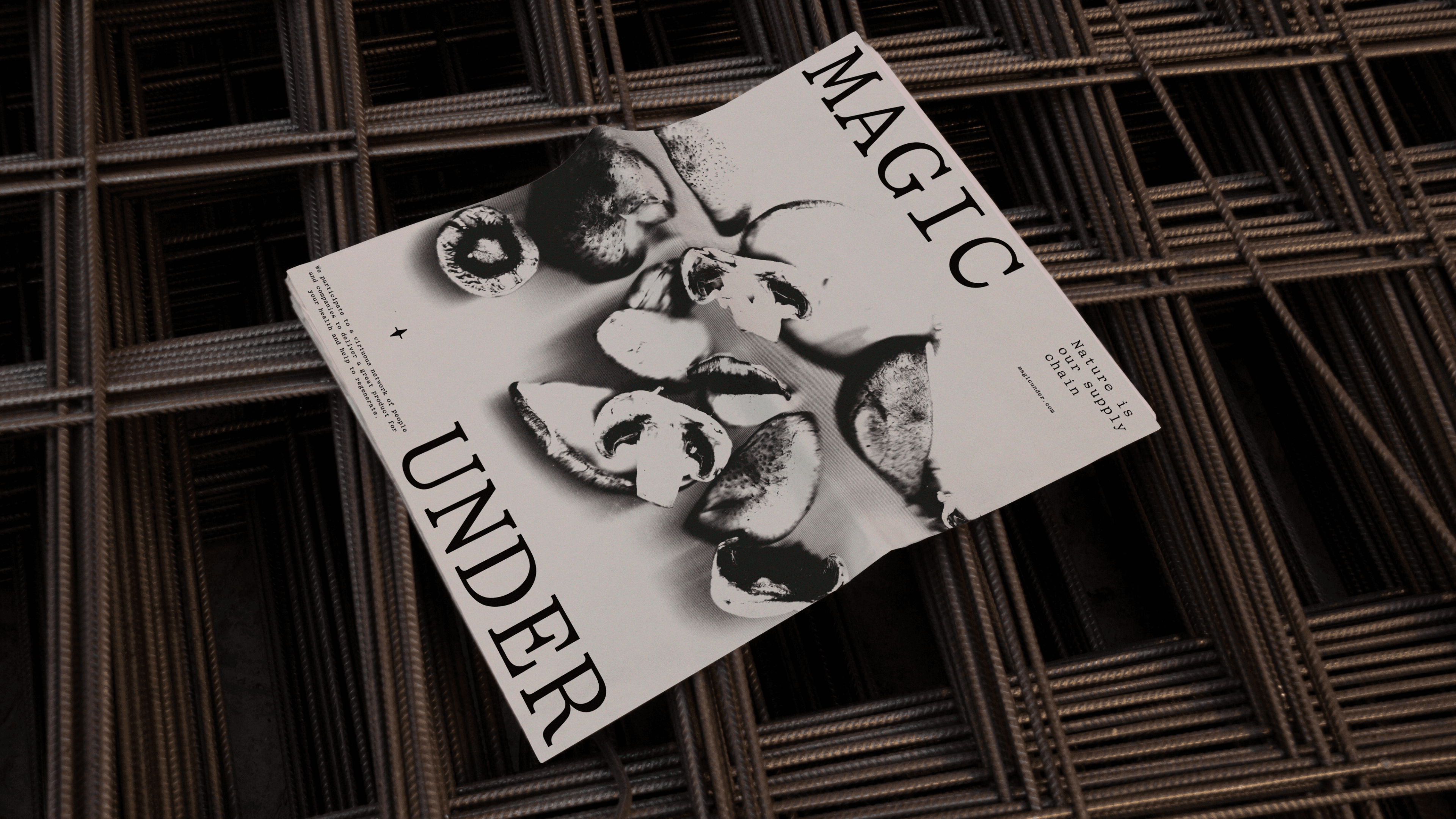 the project explores what happens below visibility, where growth, decay and regeneration coexist. we developed a visual and conceptual system that translates this into form: organic structures, high contrast, material textures and typography that balances clarity with irregularity. the identity moves between scientific and poetic, designed to expand across formats while maintaining coherence.